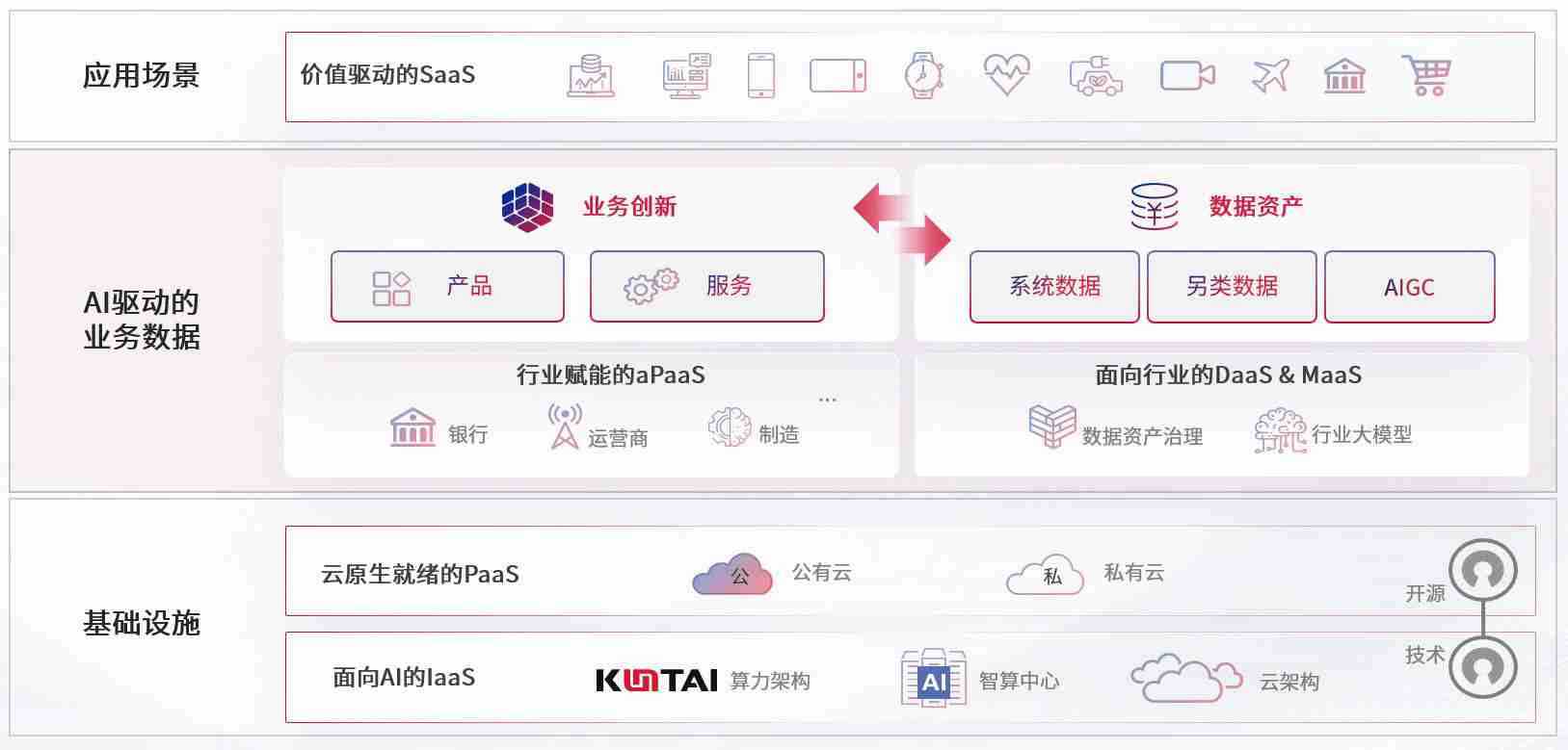 数字时代,,围绕企业数字化转型的关键要素,,IWBET数码开创性的提出数云融合战略和技术体系框架,,着力在云原生、、数字原生、、、、AI原生和信创产业上架构产品和服务能力,,,为处在不同数字化转型阶段的快消零售、、、、汽车、、、金融、、医疗、、、、政企、、、教育、、运营商等行业客户提供泛在的敏捷IT能力和融合的数据驱动能力,,,构建跨界融合创新的数字业务场景和新业务模式,,,,助力企业级客户建立面向未来的核心能力和竞争优势,,,,全面推动社会的数字化、、、、智能化转型升级。。。